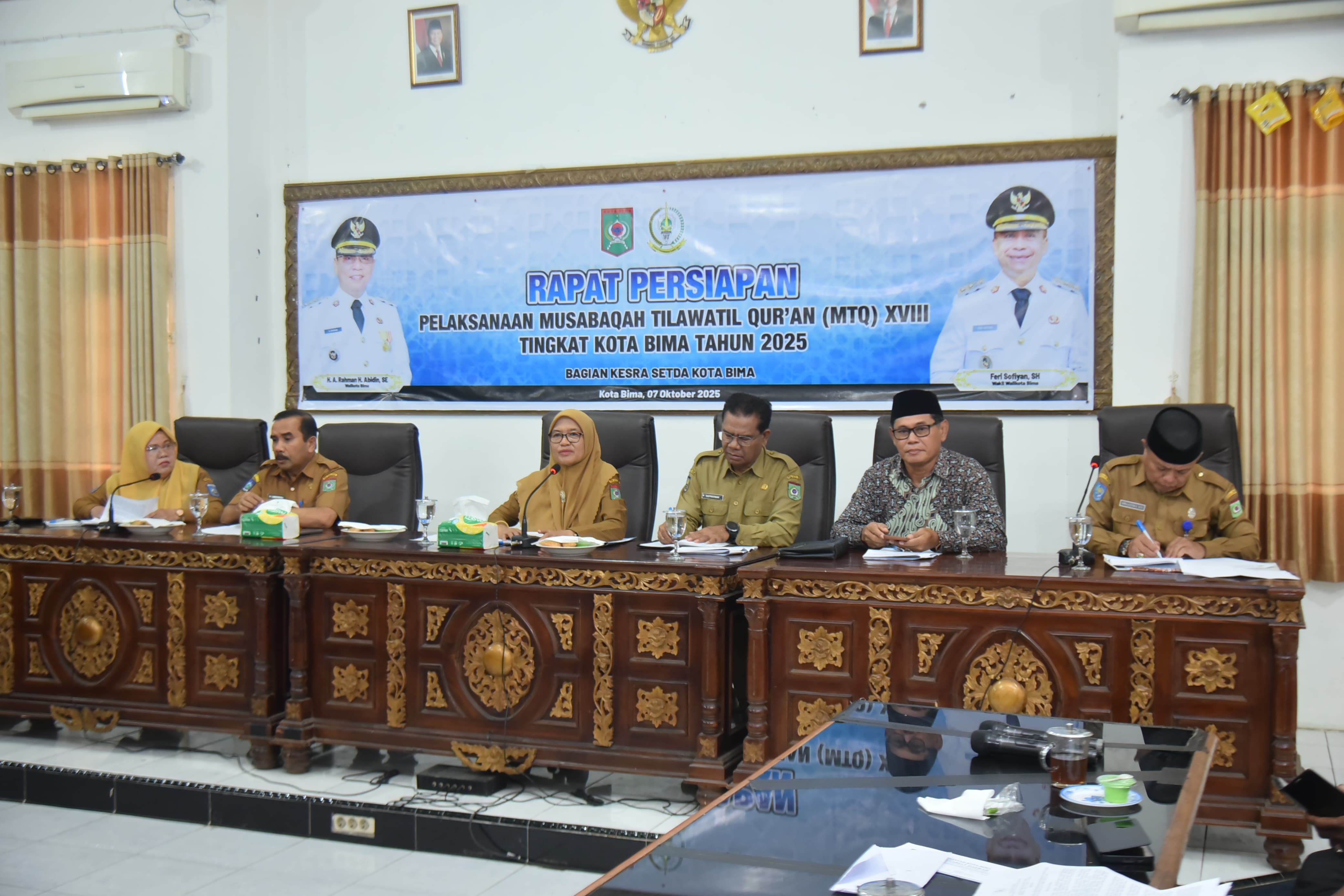 Rapat tersebut dipimpin langsung oleh Penjabat Sekretaris Daerah (Pj Sekda) Kota Bima, Hj. Mariamah, SH, didampingi oleh para Asisten, Staf Ahli, beberapa Kepala OPD, Kabag Kesra, Ketua LPTQ beserta jajarannya, serta tamu undangan lainnya.