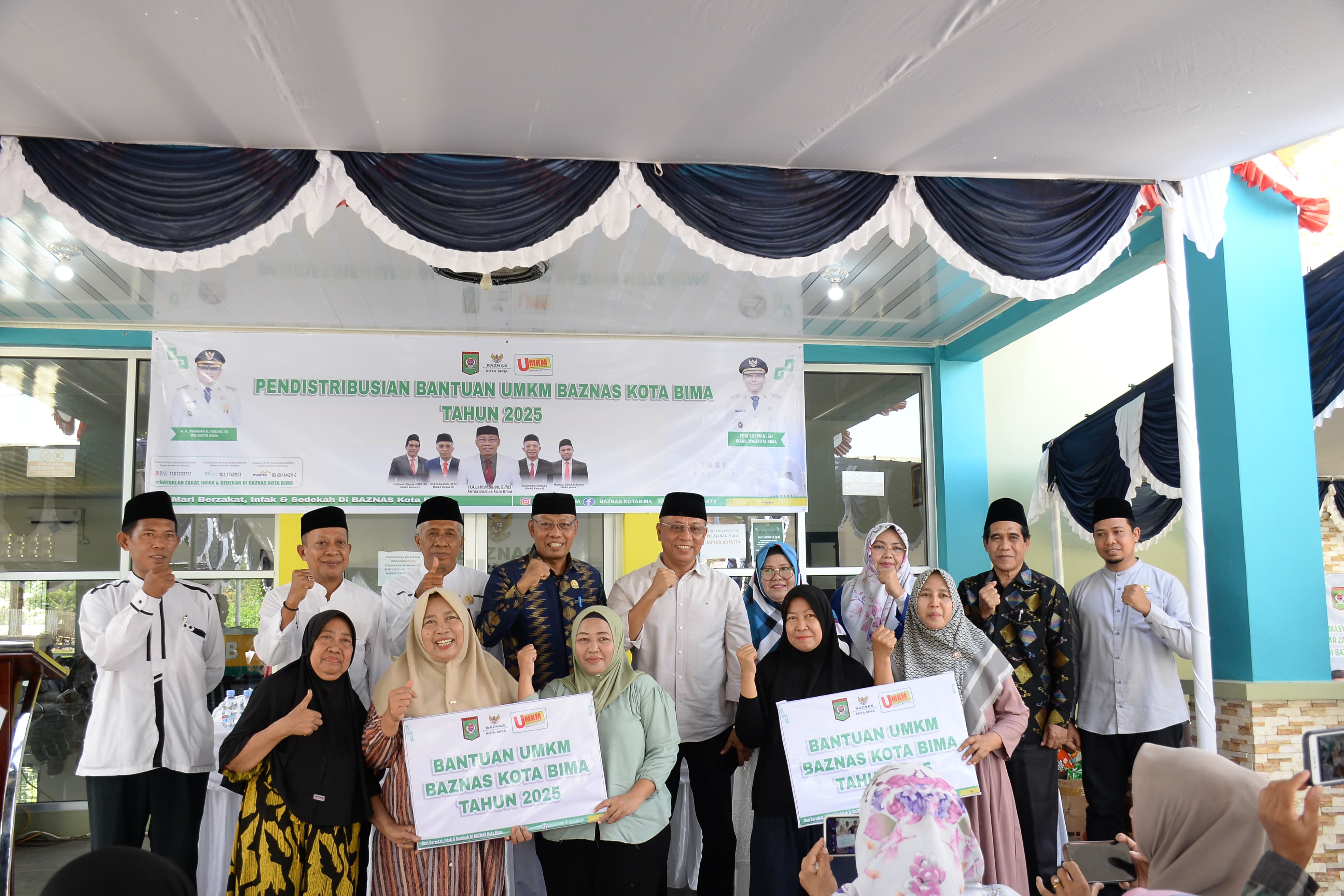 Ketua BAZNAS Kota Bima dalam pengantarnya menjelaskan bahwa sebanyak 150 mustahik menerima bantuan senilai Rp2,5 juta per orang, bersumber dari zakat profesi ASN Kota Bima. Bantuan yang di distribusikan dalam bentuk barang dagangan bagi para pelaku UMKM di Kota Bima.