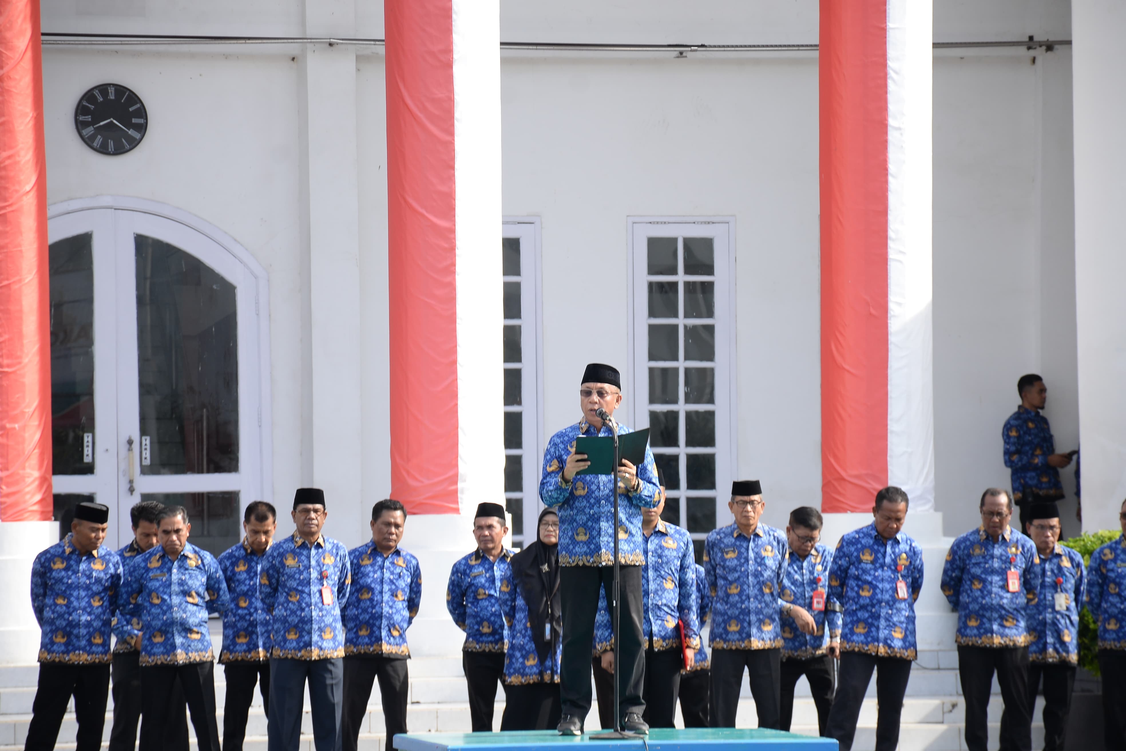 Apel gabungan tersebut dipimpin langsung oleh Wali Kota Bima, H. A. Rahman H. Abidin, SE, dan dihadiri oleh seluruh Asisten, Staf Ahli, Kepala OPD, Kepala Bagian lingkup Setda Kota Bima, para Camat dan Lurah se-Kota Bima, serta diikuti oleh jajaran ASN dan Non ASN di lingkungan Pemerintah Kota Bima.
