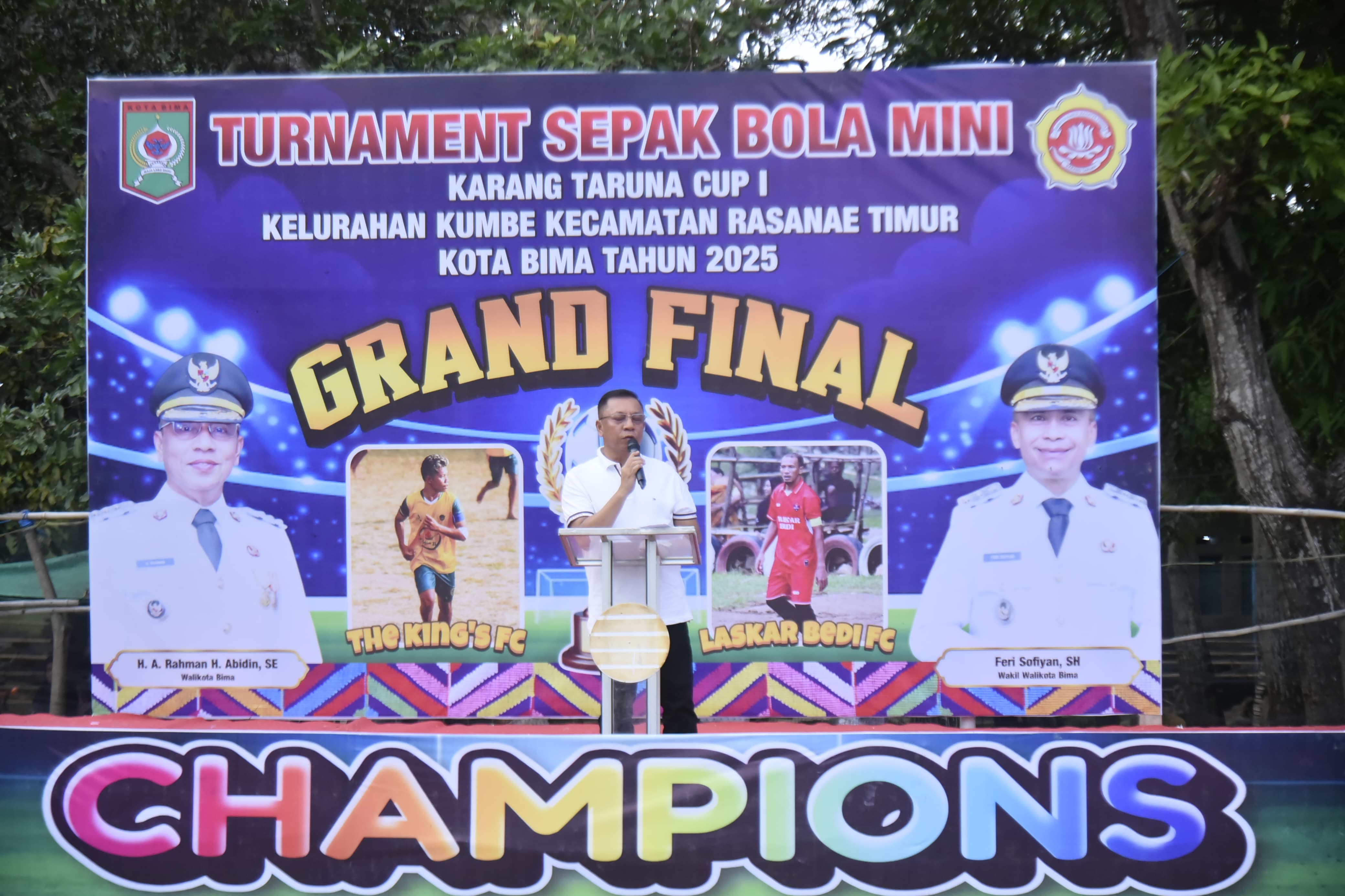 Dalam sambutan sekaligus penutupan resmi turnamen, Wali Kota Bima menyampaikan rasa bangganya atas antusiasme masyarakat yang luar biasa dalam menyaksikan grand final antara The Kings FC Kumbe dan Laskar Bedi.